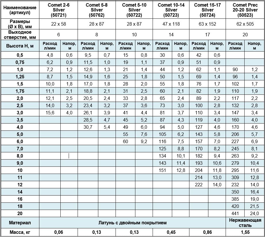 Фонтанная насадка Comet 5-8 Silver